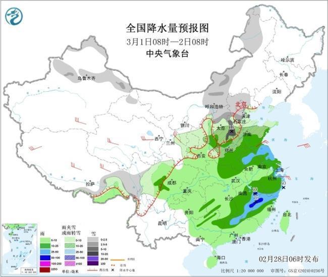 预计2月28日中午至3月1日中午: